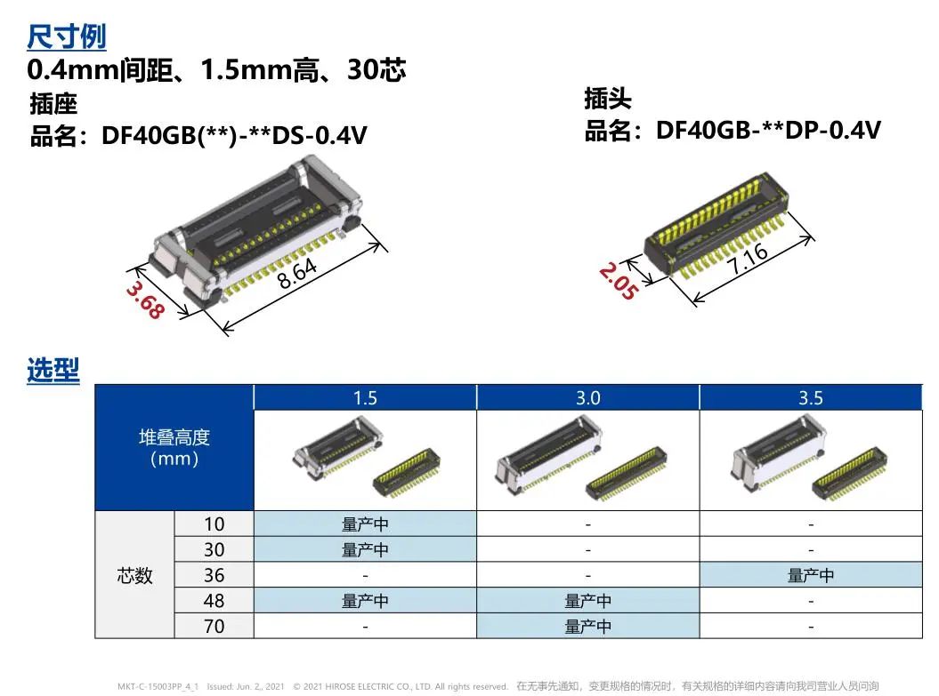 DF40系列 选型 尺寸&选型 对应USB4 Gen.2 (10Gbps)传输- 1
