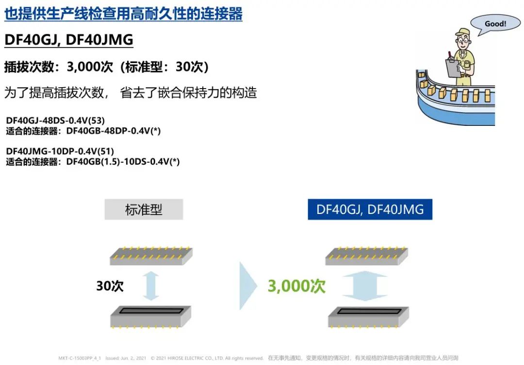 6. 卓越的端子构造实现了明确的锁扣感和大的嵌合力
