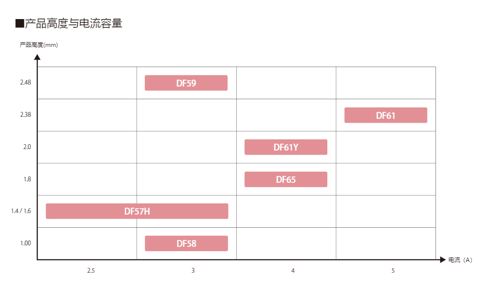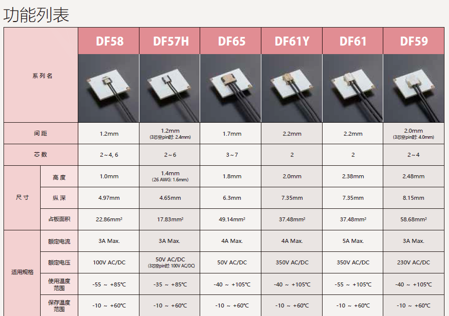 该连接器实现了大电流、省空间,高度为2.0mm。对比DF61,有着更为低薄的构造。小型紧凑,同时支持大电流。